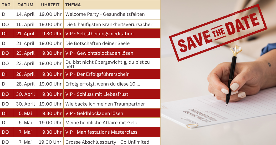 DI, 5. MAI, 9.30 UHR: VIP Session – Geldblockaden lösen